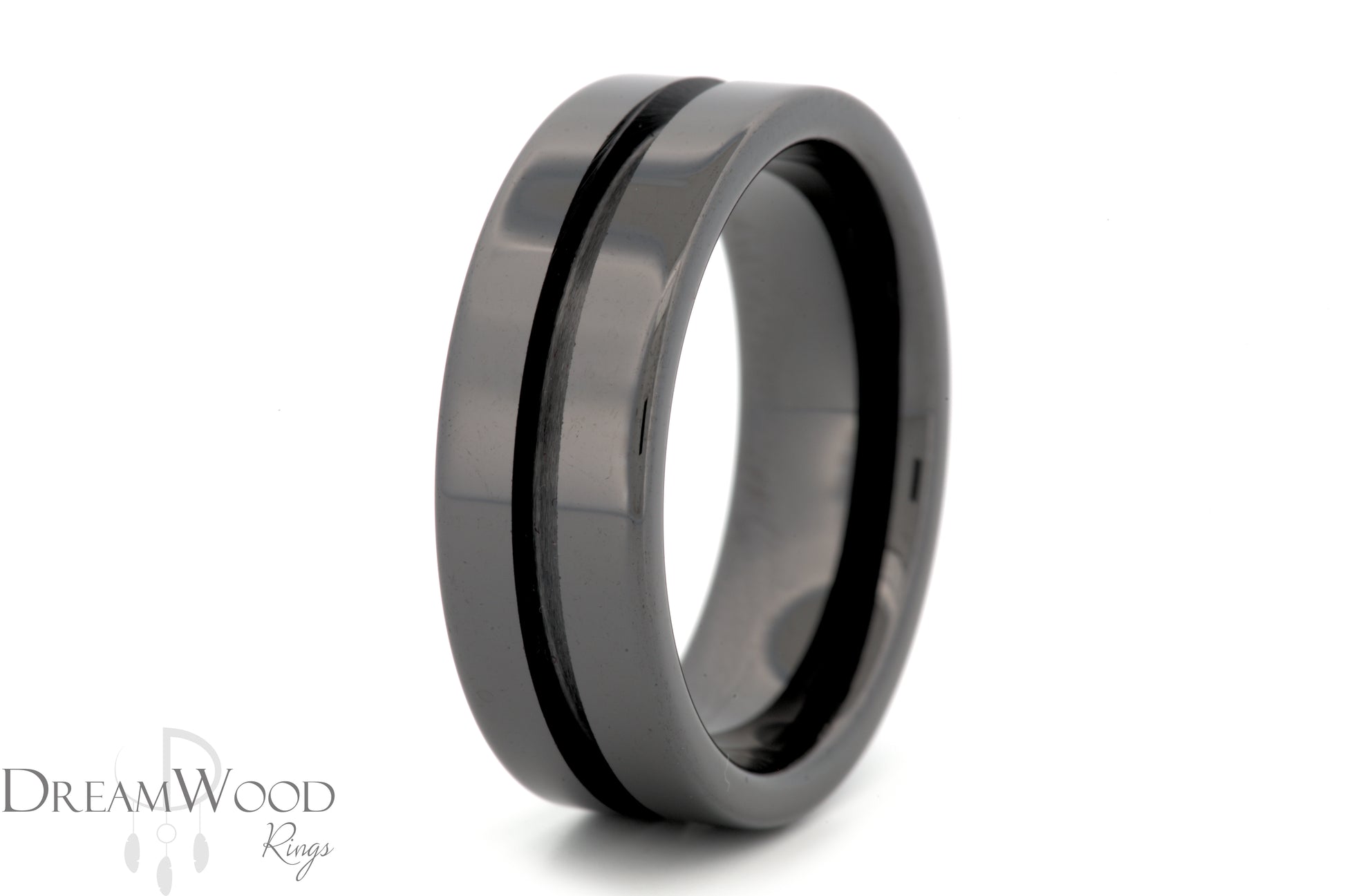 This black ceramic ring blank features a clean high-polish finish with a single center groove, perfect for inlays. Scratch-resistant, lightweight, and comfortable to wear every day.